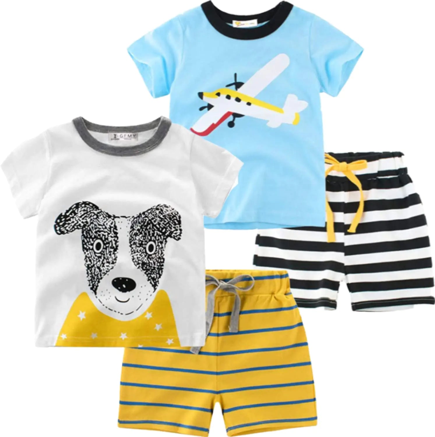 Toddler Boys Pajamas 100% Cotton Summer Pjs for Boy Jammies Dinosaur Dog Little Kids Clothes Sleepwear Short Sets Size 2-7T (as1 age 2_months 11# 4-pcs-dog-airplane-set 3T)
